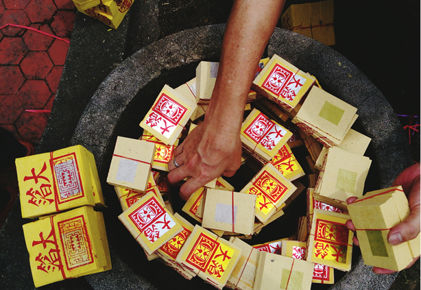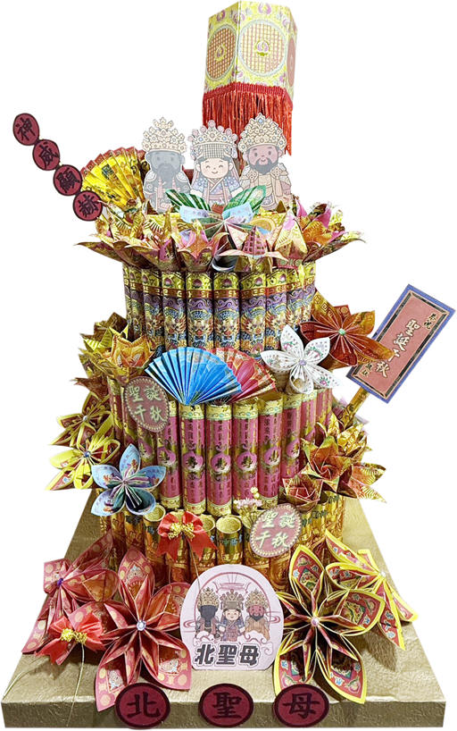 外型如蛋糕般的金紙作品,不僅美觀獨特,更象徵「圓滿、長壽、祝福」。